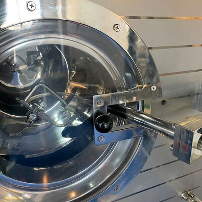 Cette machine est faite d'acier inoxydable de haute qualité minutieusement et rencontre les les comprimés font le mouvement compliqué et constant de voie avec la rotation facile et sans heurt et l'échange fréquent dans le cylindre de rotation propre et fermé de la machine de revêtement de film. Et elle peut automatiquement pulvériser le milieu de revêtement selon l'écoulement de processus et les paramètres de processus raisonnables. L'air chaud épuisé par le fond des comprimés sous l'effet de l'échappement d'air et de la pression négative afin de rendre le milieu de revêtement sec rapidement sur les surfaces des comprimés et former un film extérieur ferme, fin et étroit et lisse.