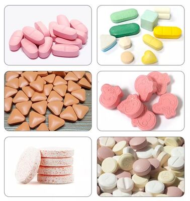 3. La machine peut presser non seulement les comprimés ronds mais comprimés géométriques également les différents de forme de comprimés, bicouches et annulaires, les comprimés peuvent avoir les lettres appliquées des deux côtés.
