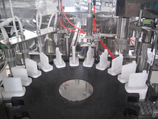Cette machine convient à remplir liquide dans la boîte de jet mince de chapeau qui est appliquée dans la médecine et les industries cosmétiques. Elle effectue le processus automatique entier comprenant le remplissage, chapeau plaçant et couvrir spécial de vissage utilisé pour le chapeau de pompe avec le long tube, avec le manipulateur et le dispositif de guidage à précis plaçant le chapeau de pompe. Cette machine se conforme aux requiremants du GMP.