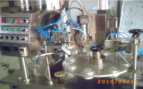 Cette machine est faite d'acier inoxydable. Les processus fonctionnants sont commandés par les boutons. De tels processus incluent l'alimentation de tube manuelle, la rotation automatique de 8 tube-positions, la ration remplissant, la coupe automatique et la chauffage et le scellage. Tous les processus sont bouton commandé par le cylindre. Il est facile ajuster le volume remplissant et la vitesse remplissante est réglable. Cette machine est utilisée pour remplir et sceller toutes sortes de tubes en plastique et stratifiés. L'aspect du cachetage est ordonné et ferme. Selon différents matériaux, nous pouvons choisir le système de chauffage approprié.
