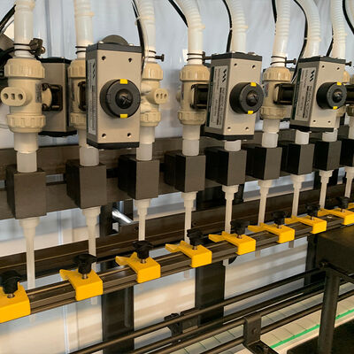 Les dimensions globales de cette machine de remplissage sont de 2450 x 800 x 1650 mm, ce qui en fait une machine compacte qui peut être facilement intégrée dans n'importe quelle ligne de production.Il a 16 buses de remplissage conçues pour remplir chaque bouteille avec précision, et la précision de remplissage de cette machine est inférieure à 1%, ce qui garantit que chaque bouteille est remplie au bon niveau.
